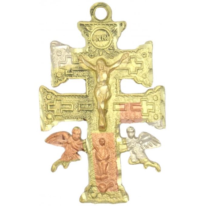 Amuleto Cruz de Caravaca con Cristo Tumbaga 3 Metales 4.5 cm