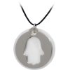 Amuleto Mano Fatima c/cordon (Acero Plateado sobre nacar) (C2)