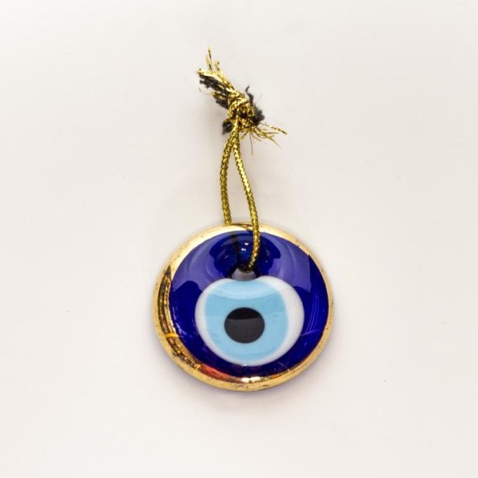 Sé el primero en valorar “Amuleto Proteccion Ojo Turco Cristal Borde Dorado 4,5 cm (para colgar)”