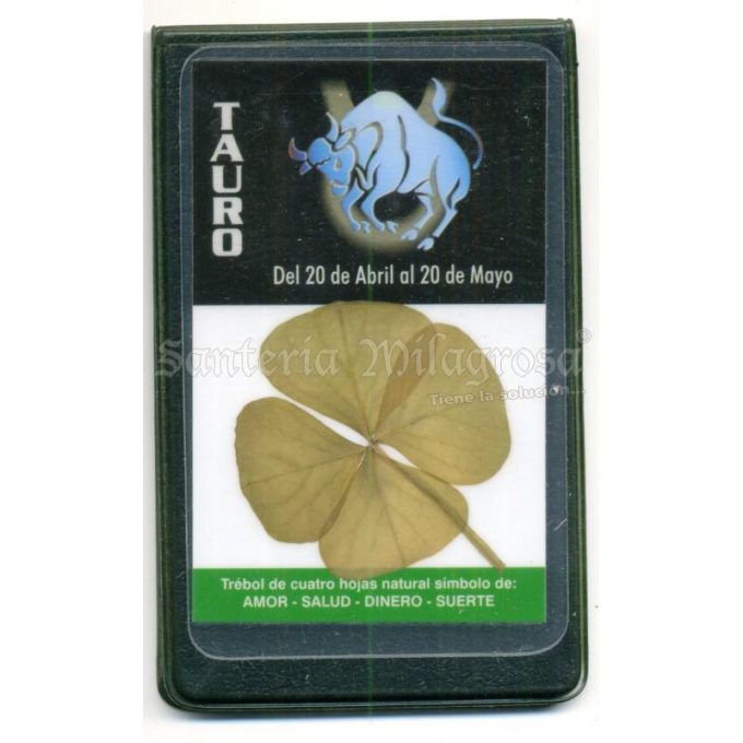 Amuleto Trebol 4 hojas Natural + Zoodiaco Tauro