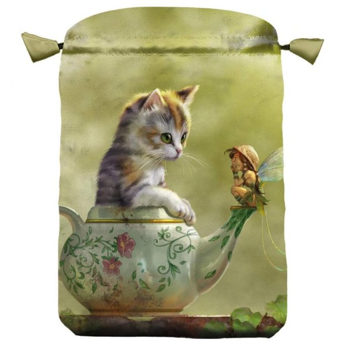 Bolsa Tarot Seda Negra 23 x 16 cm (Motivo Fantasy Cat)