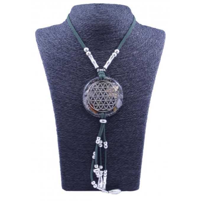 Collar Orgon Flor de la vida Verde con Abalorios (5,4 cm Ajustable)