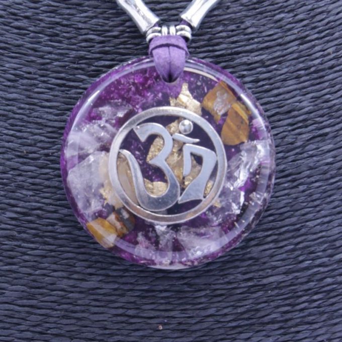 Collar Orgon Simbolo Om Morado (5,4 cm Ajustable)