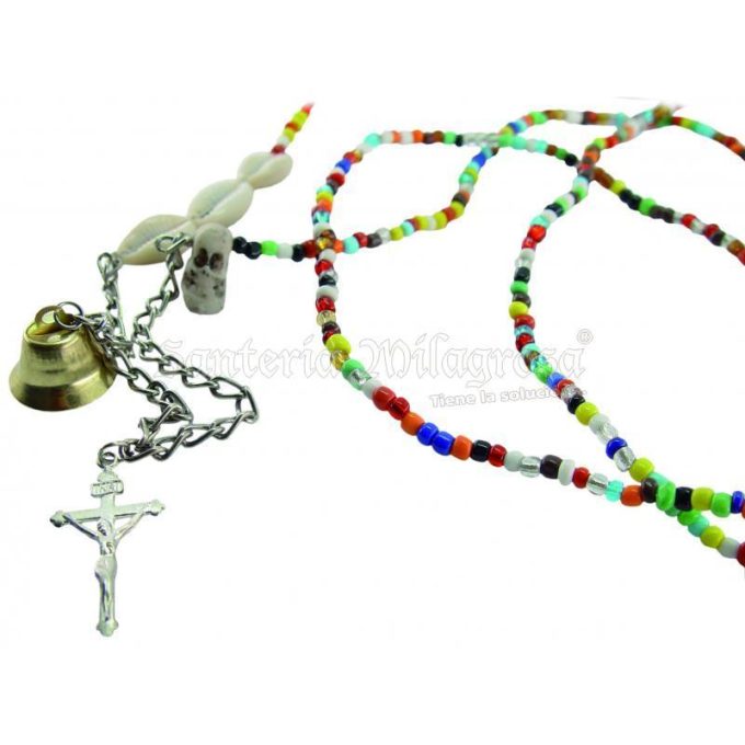 Sé el primero en valorar “Collar Santeria Bandera de Palo para Nganga 80 cm (1V)(C/ Cadena, Campana, Calavera, Cruz y Cauries)”