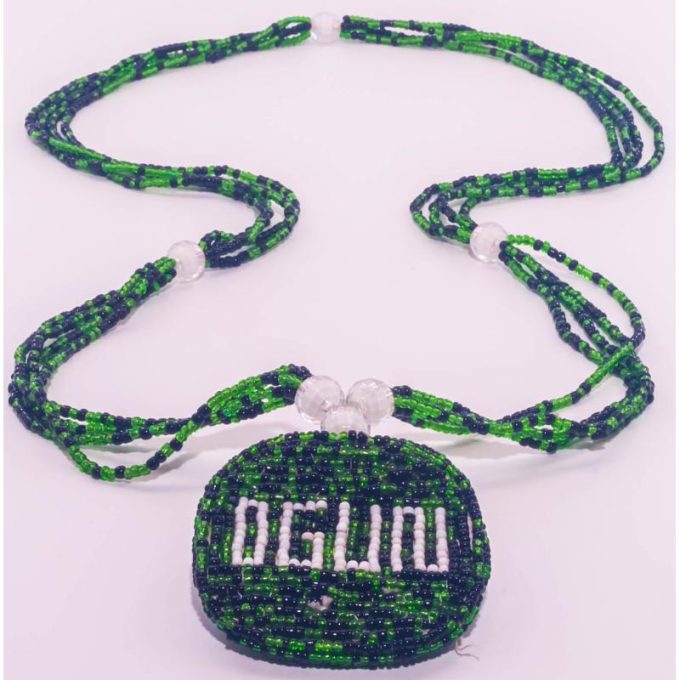 Sé el primero en valorar “Collar Santeria con Medallon OGUN (verde-negro)”