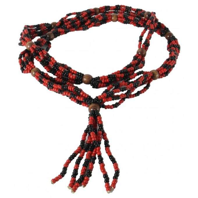 Elegua es uno de los Orichas del Linaje Yoruba de la Santeria como se conoce este Oricha es el dueño de los caminos y el destino, es el que abre o cierra el camino de la vida, atrae prosperidad, felicidad, suerte y éxito en este collar se representa un atributo.Este collar mazo de color Rojo y Negro representa al Oricha “Elegua”