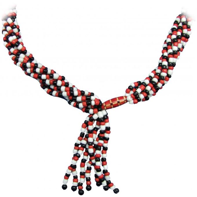 Collar Santeria Mazo Eleggua Eshu Bi (Simple) (Blanco-Negro-Rojo) (140 a 160 cm)