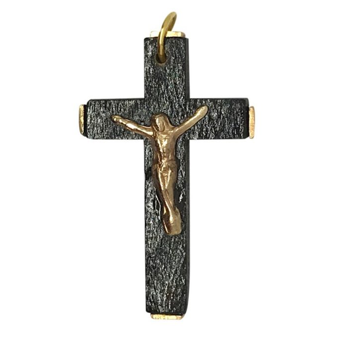 Cruz madera y metal con Cristo 4,5 cm reverso cruz en dorado