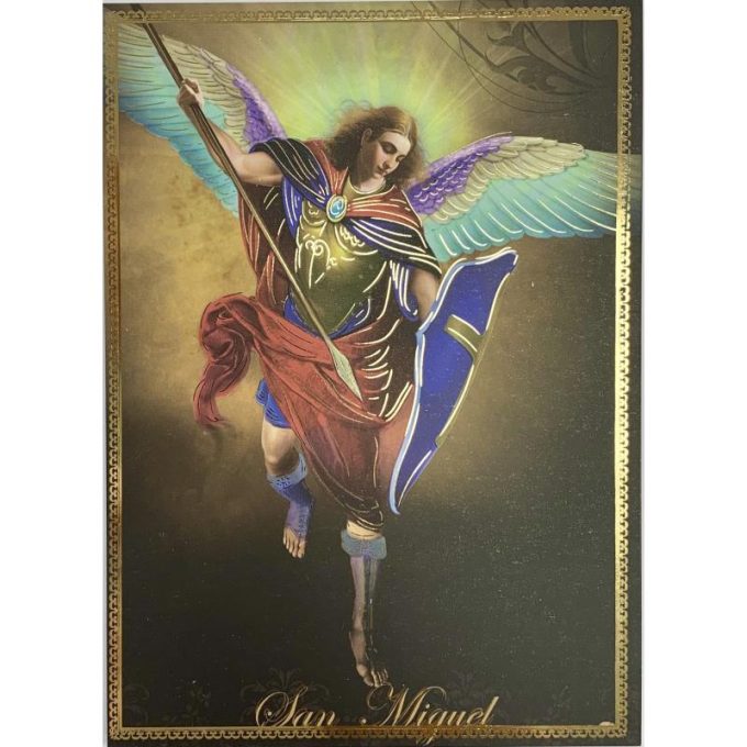 Estampa Arcangel San Miguel 10 x 14 cm c/ Escudo Dorado MX0723