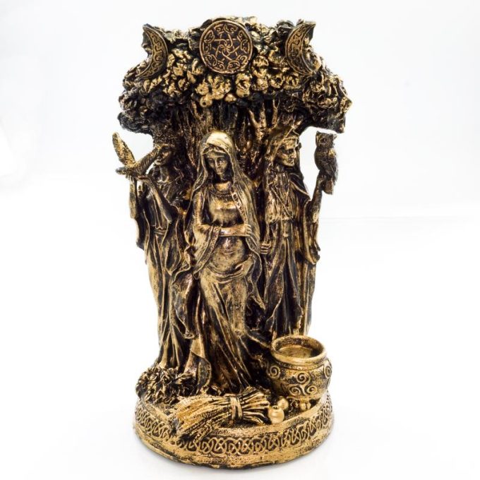Imagen Diosa Triple Hecate Diosa Luna 27 cm Dorada – Resina, Artesanal