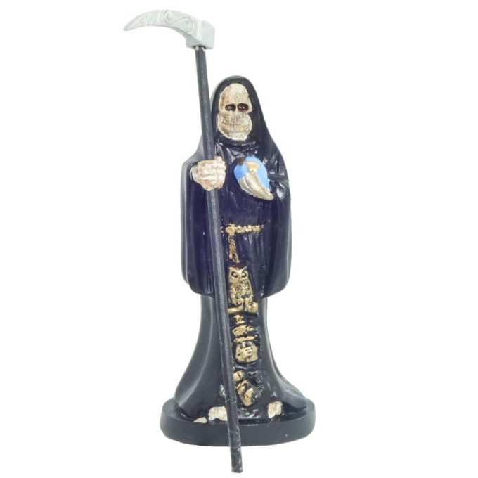 Santa Muerte 15 cm Negra c/ Amuleto Semillas – Resina