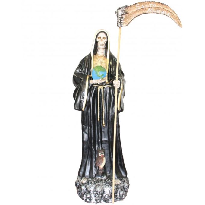 Sé el primero en valorar “Imagen Santa Muerte 180 cm 70 inch Negra – c/ Amuleto y Base (Resina)”
