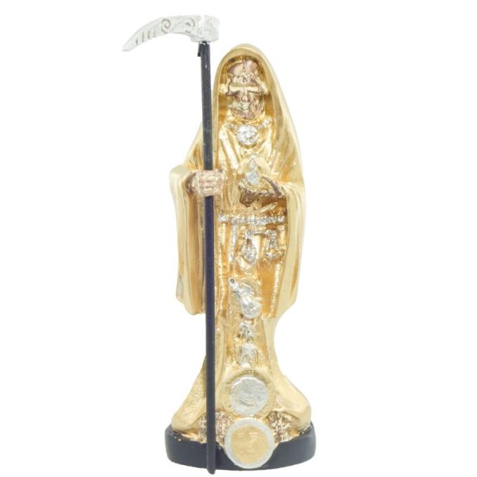 Santa Muerte 20 cm Dorada c/ Amuleto Semillas – Resina