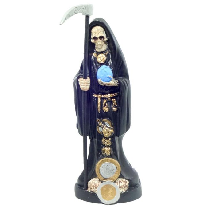 Santa Muerte 20 cm Negra c/ Amuleto Semillas – Resina