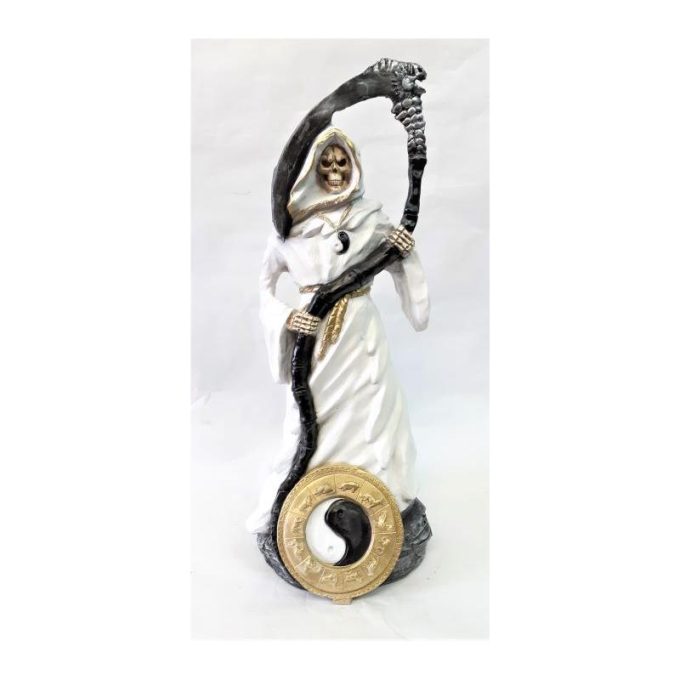 Santa Muerte 44 cm Horoscopo Yin Yang Blanca – c/ Amuleto Base (Resina Artesanal)