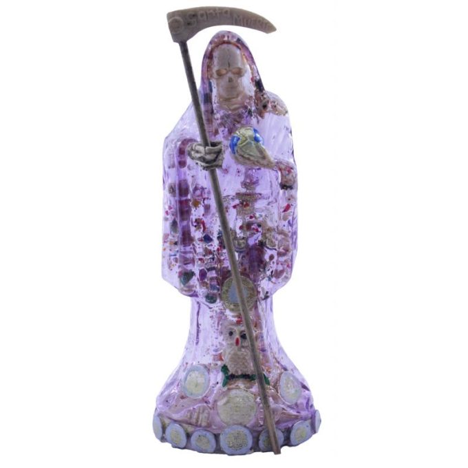 Sé el primero en valorar “Imagen Santa Muerte C/ Monedas 30 cm. (Transparente Morada) (c/ Amuleto Base)Artesanal Puede Variar el color y forma de los detalles- Resina(has)”