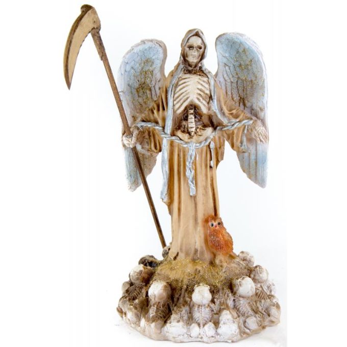 Sé el primero en valorar “Imagen Santa Muerte con Alas sobre Calaveras 30 cm 12 inch (Hueso) (c/ Amuleto Base) – Resina”