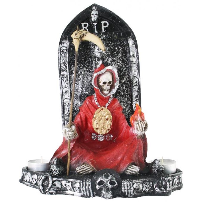 Imagen Santa Muerte con Lapida 27 cm 11 inch (Roja) Artesanal puede variar el color y la forma de los detalles Resina – Resina