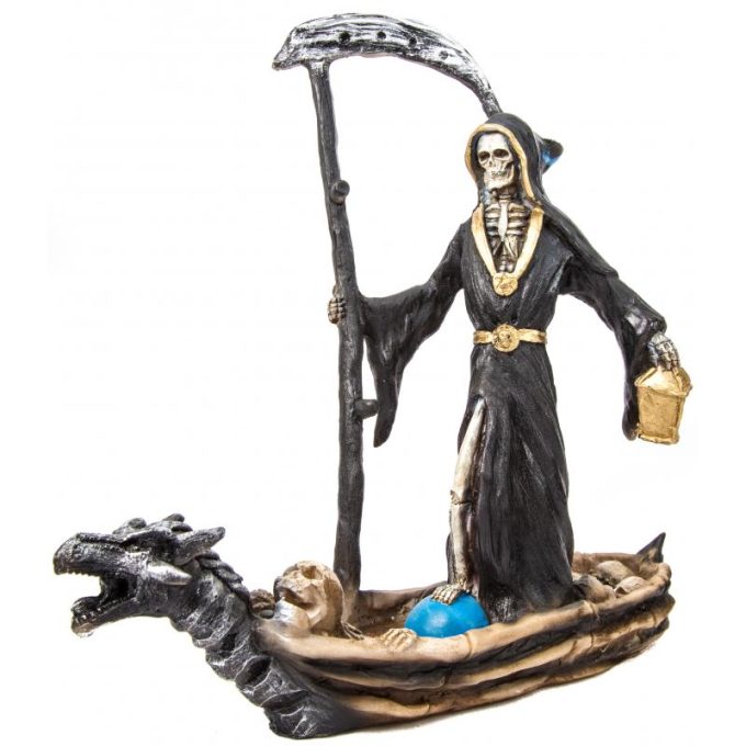 Imagen Santa Muerte en Barca 30 x 30 cm (Negra) – Artesanal puede variar el color y forma de los detalles – Resina