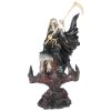 Imagen Santa Muerte Lapida Pata de Gallina 45 cm x 30 cm (Negra) (Copa) (c/ Amuleto Base) – Resina, Artesanal (Color del Lazo Puede Variar)