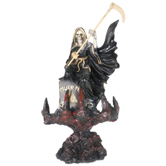 Sé el primero en valorar “Imagen Santa Muerte Lapida Pata de Gallina 45 cm x 30 cm (Negra) (Copa) (c/ Amuleto Base) – Resina, Artesanal (Color del Lazo Puede Variar)”