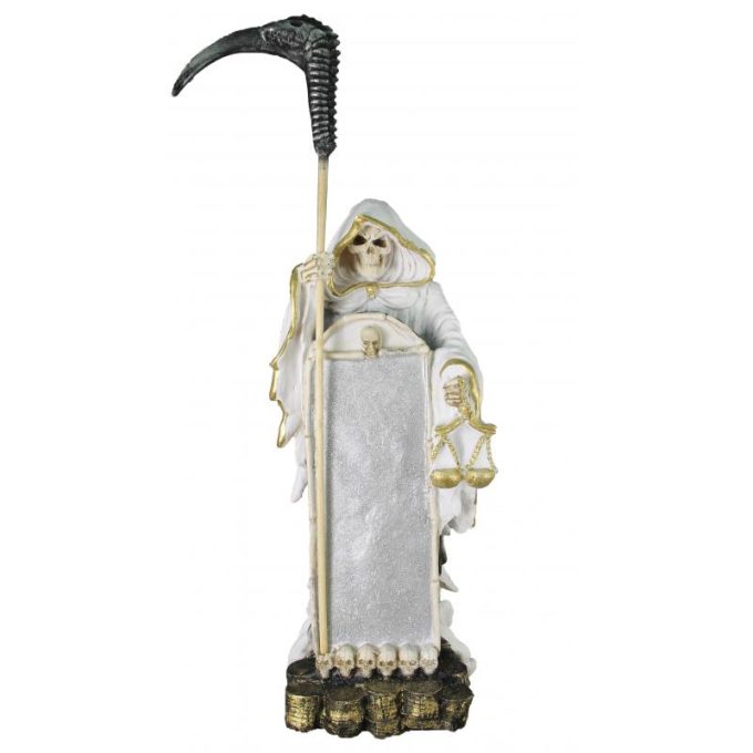 Imagen Santa Muerte Monge Espejo 65 cm (Blanco) (c/ Amuleto Base) Artesanal pude Variar el Color y la Forma de los detalles – Resina