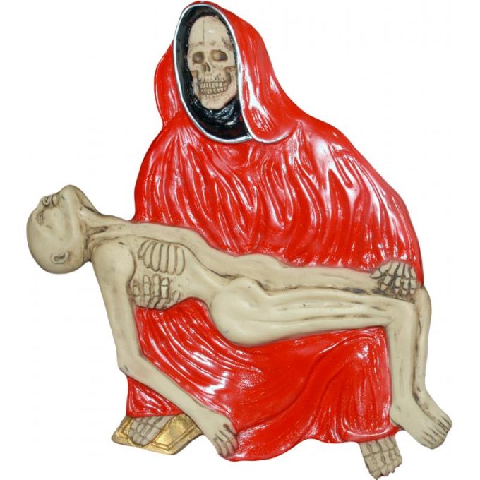 Imagen Santa Muerte para Colgar Pared Roja 30 x 25 cm. – Resina