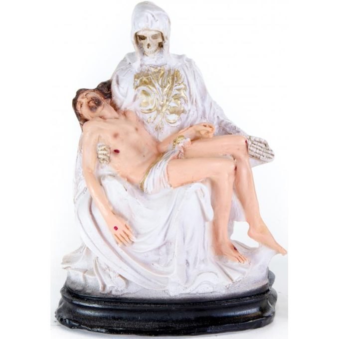 Santa Muerte Piadosa 25 cm 10 inch (Blanca) (c/ Amuleto en Base) – Resina