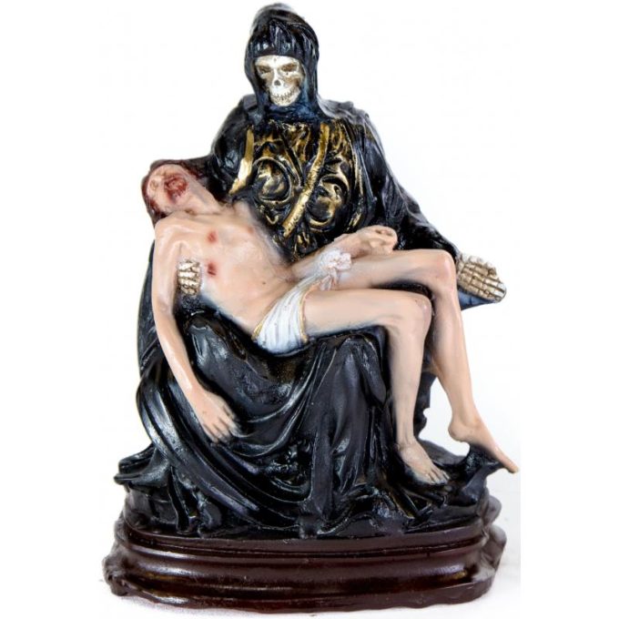Imagen Santa Muerte Piadosa 25 cm 10 inch (Negra) (c/ Amuleto en Base) – Resina