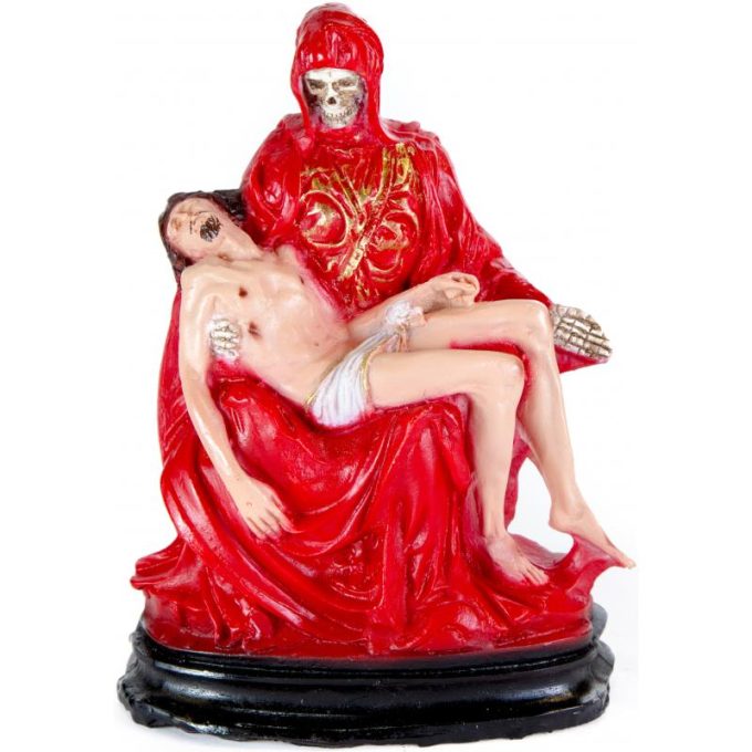 Santa Muerte Piadosa 25 cm 10 inch (Roja) (c/ Amuleto en Base) – Resina