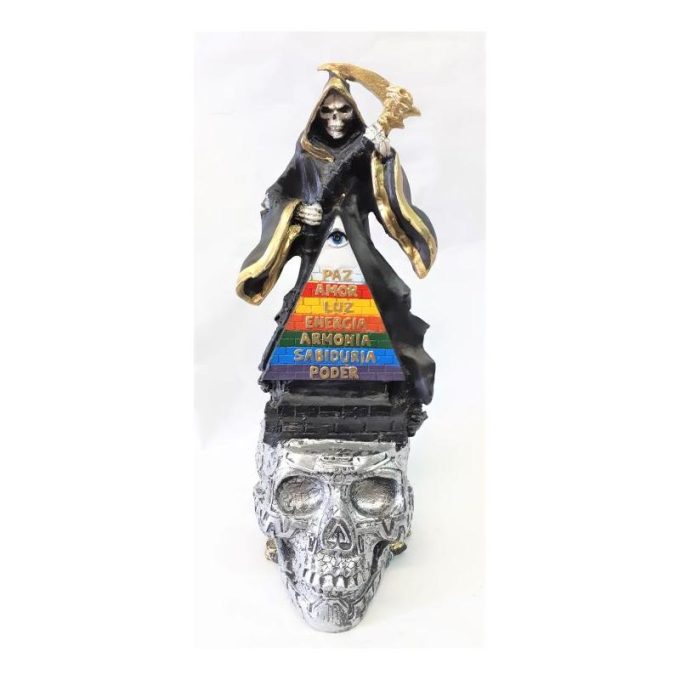Imagen Santa Muerte sobre Craneo con Piramide (Negra) 40 cm Resina
