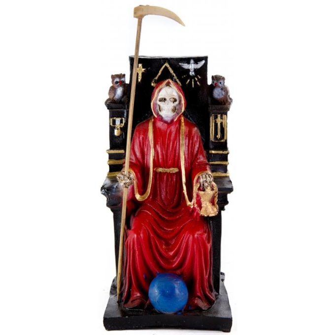 Sé el primero en valorar “Santa Muerte sobre Trono Imperial 22 cm (Roja) (c/ Amuleto Base) – Resina”