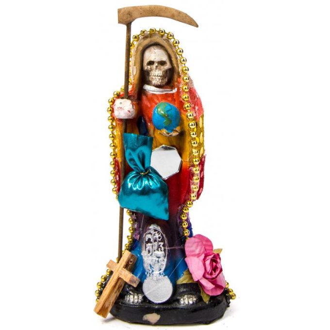 Santa Muerte Vestida 15 cm (7 Colores) (c/ Amuleto Base) – Resina, Artesanal