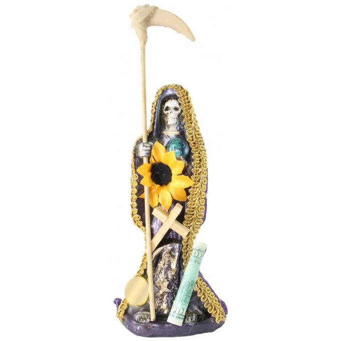 Santa Muerte Vestida 15 cm (Morada) (c/ Amuleto Base) – Resina, Artesanal