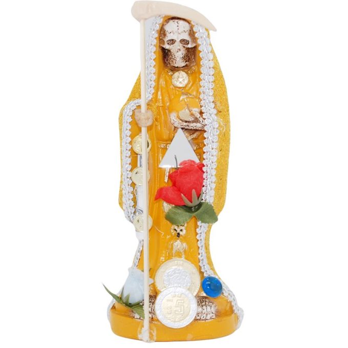 Santa Muerte Vestida 20 cm (Amarilla) (c/ Amuleto Base) Resina, Artesanal