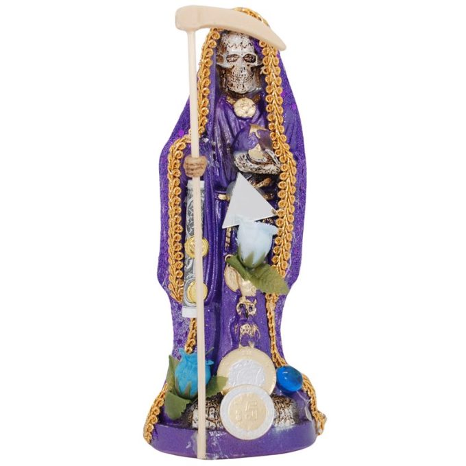 Santa Muerte Vestida 20 cm (Morada) (c/ Amuleto Base) Resina, Artesanal