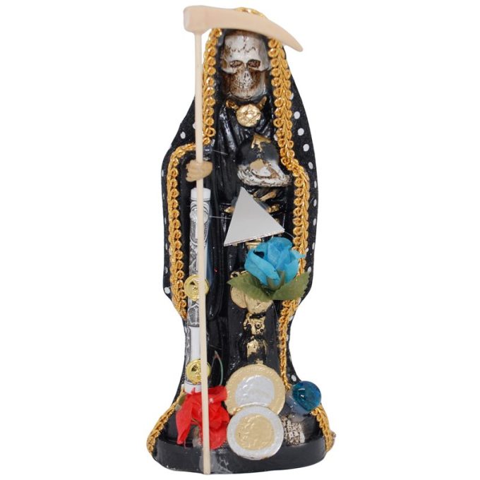 Santa Muerte Vestida 20 cm (Negra) (c/ Amuleto Base) Resina, Artesanal