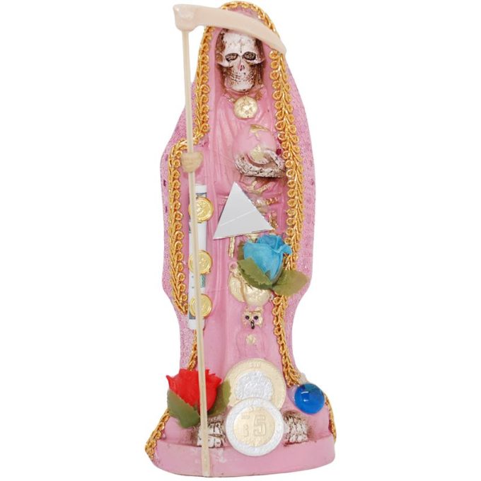 Imagen Santa Muerte Vestida 20 cm. (Rosa) (c/ Amuleto Base) Resina, Artesanal puede variar la forma los detalles