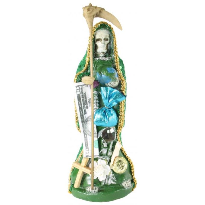 Santa Muerte Vestida 20 cm (Verde) (c/ Amuleto Base) Resina, Artesanal