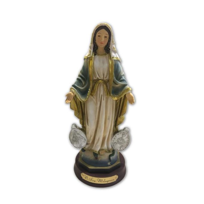 Virgen Milagrosa con medallas 21 cm – Resina Premium