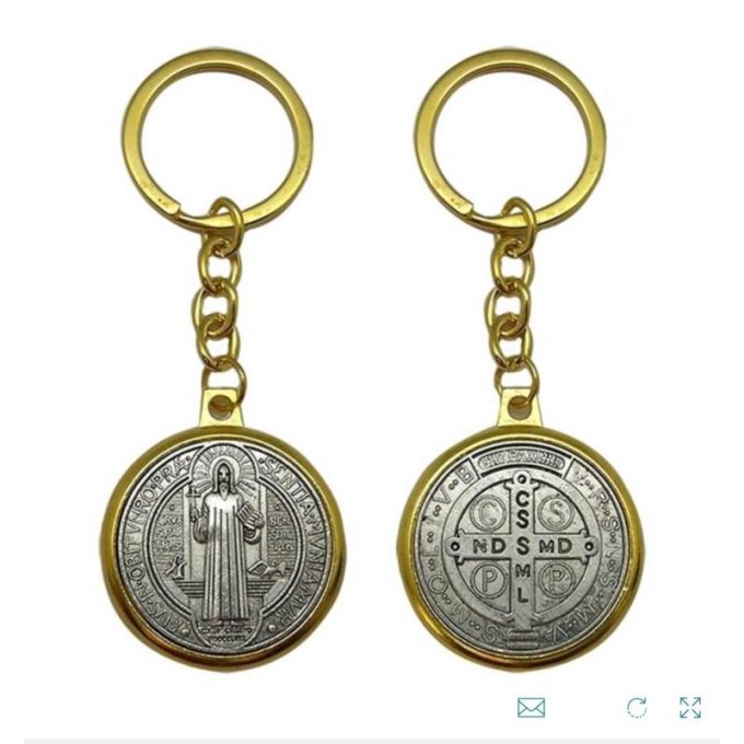 Llavero Dorado Medalla San Benito plateada 3,1 cm