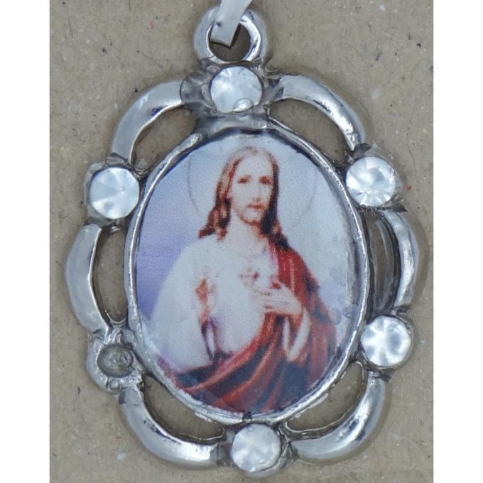 MEDALLA c/ Cadena Sagrado Corazon de Jesus con Brillo 2.5 x 2 cm aprox.