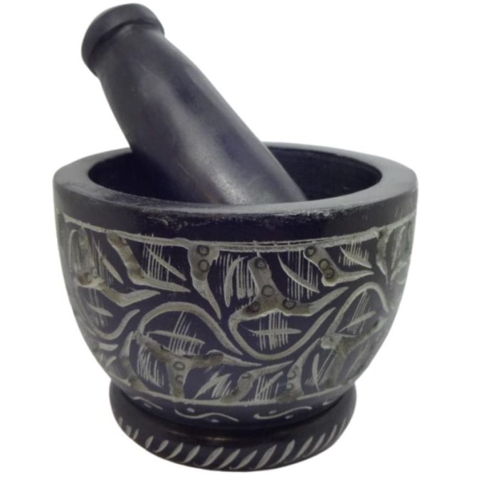 Mortero arbol de la vida piedra jabon negro 4 x 3.5 ‘