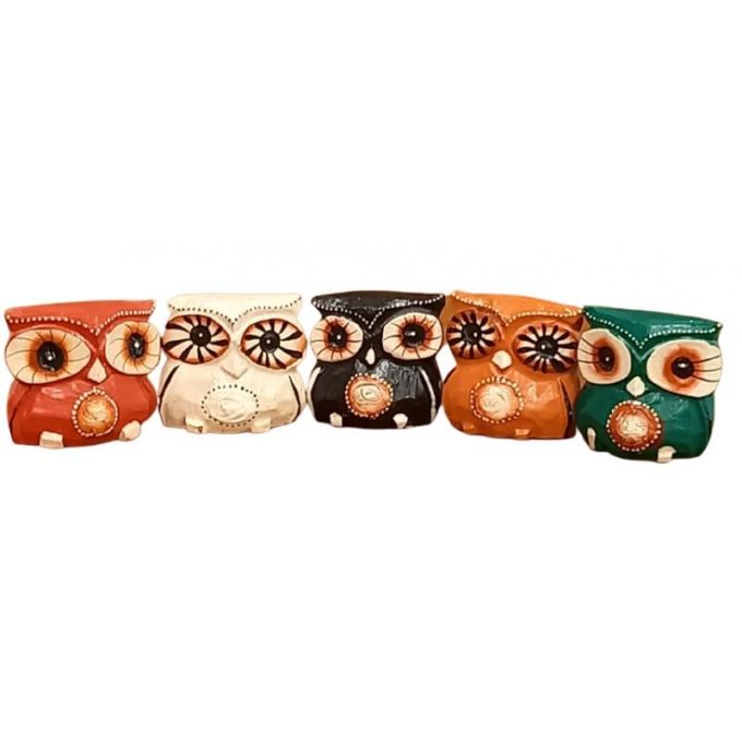 Pack 5 Buhos Madera 5 x 5 cm Aprox.(Blanco,Naranja,Negro,Rojo,Verde)
