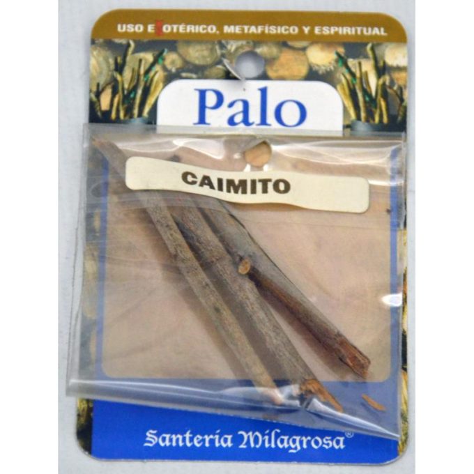 Es uno de los palos más fuertes de la Regla de Palo Monte Mayombe. Se emplea para encubrir o transformar al que necesita huir, y que este pase como un desconocido aún entre las gentes que más frecuenta. Gracias al caimito la persona se percibe completamente distinta a la realidad frente a los demás. Con frecuencia, en un juicio, gracias a este prodigio que opera el caimito, al acusador no le es posible identificar a su acusado y este sale libre.