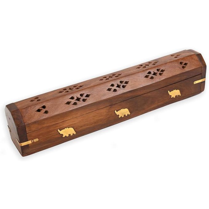 Porta Incienso Baul Madera c- Motivos Dorados Elefante