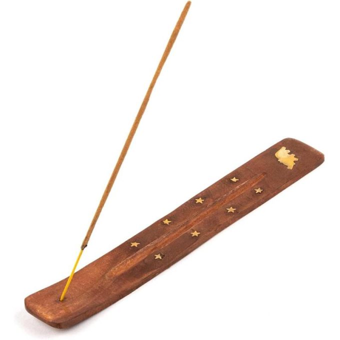 Porta Incienso Tabla Madera Marron c- Motivos Dorados Elefante