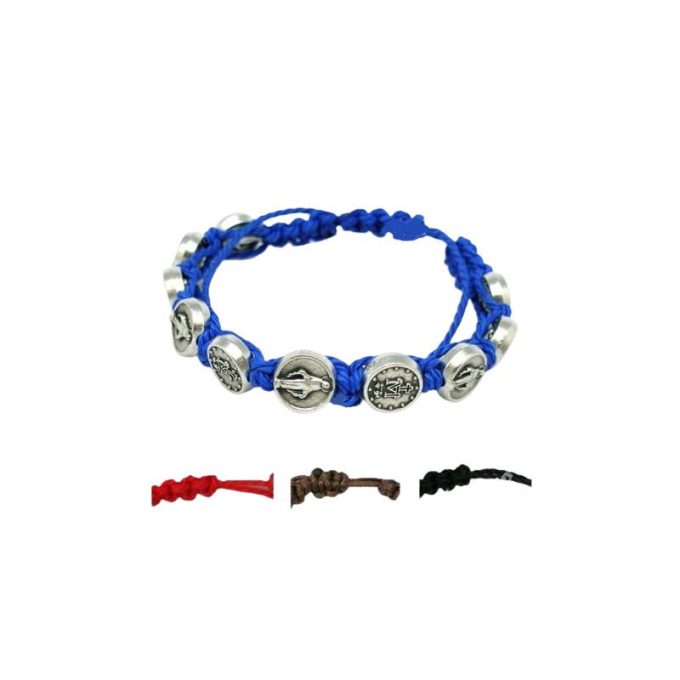 Pulsera Cuerda Virgen Milagrosa c/ medallas metal 9 mm (colores surtidos)