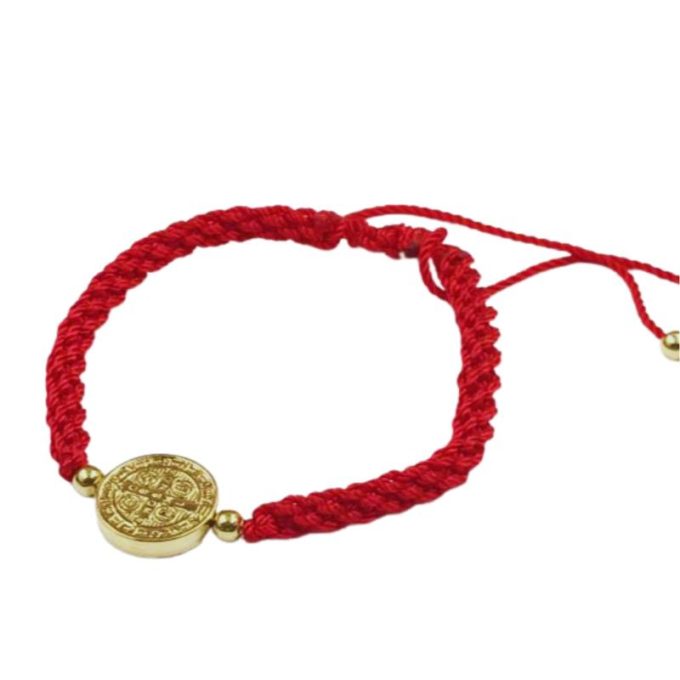 Pulsera Hilo Roja Macrame Medalla San Benito Dorado (Ajustable)