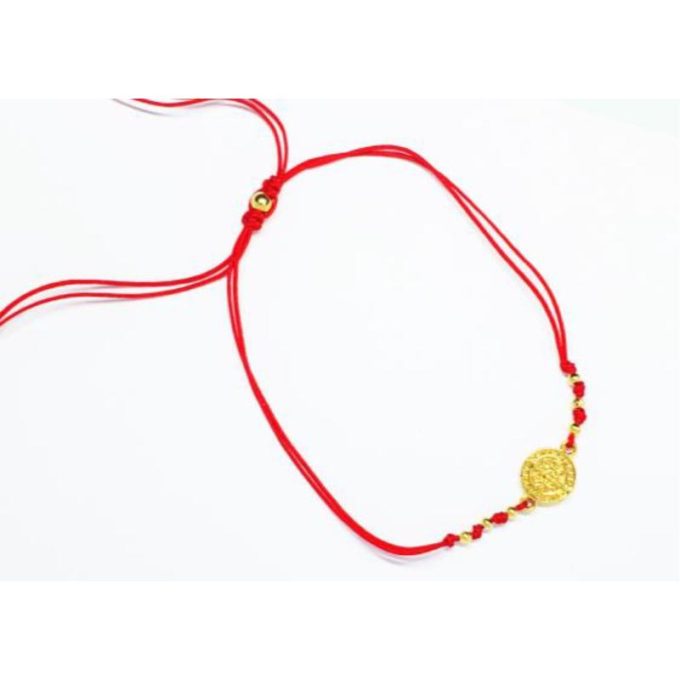 Pulsera Hilo Roja Medalla San Benito Dorado (Ajustable)